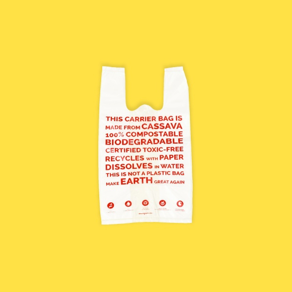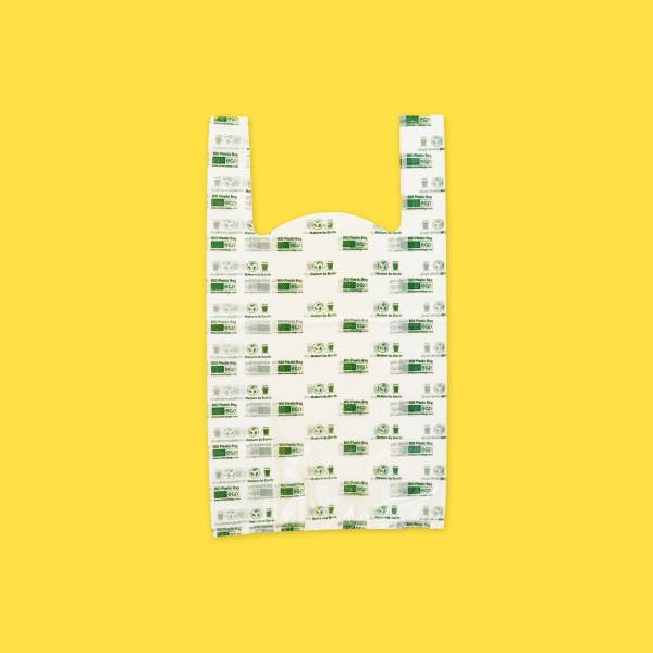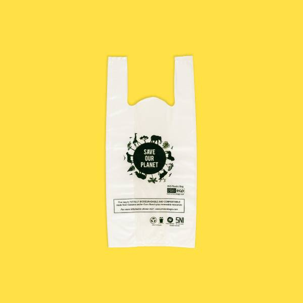 TShirt Proeco adalah produk kantong dengan pegangan tangan yang mudah terurai di alam.
